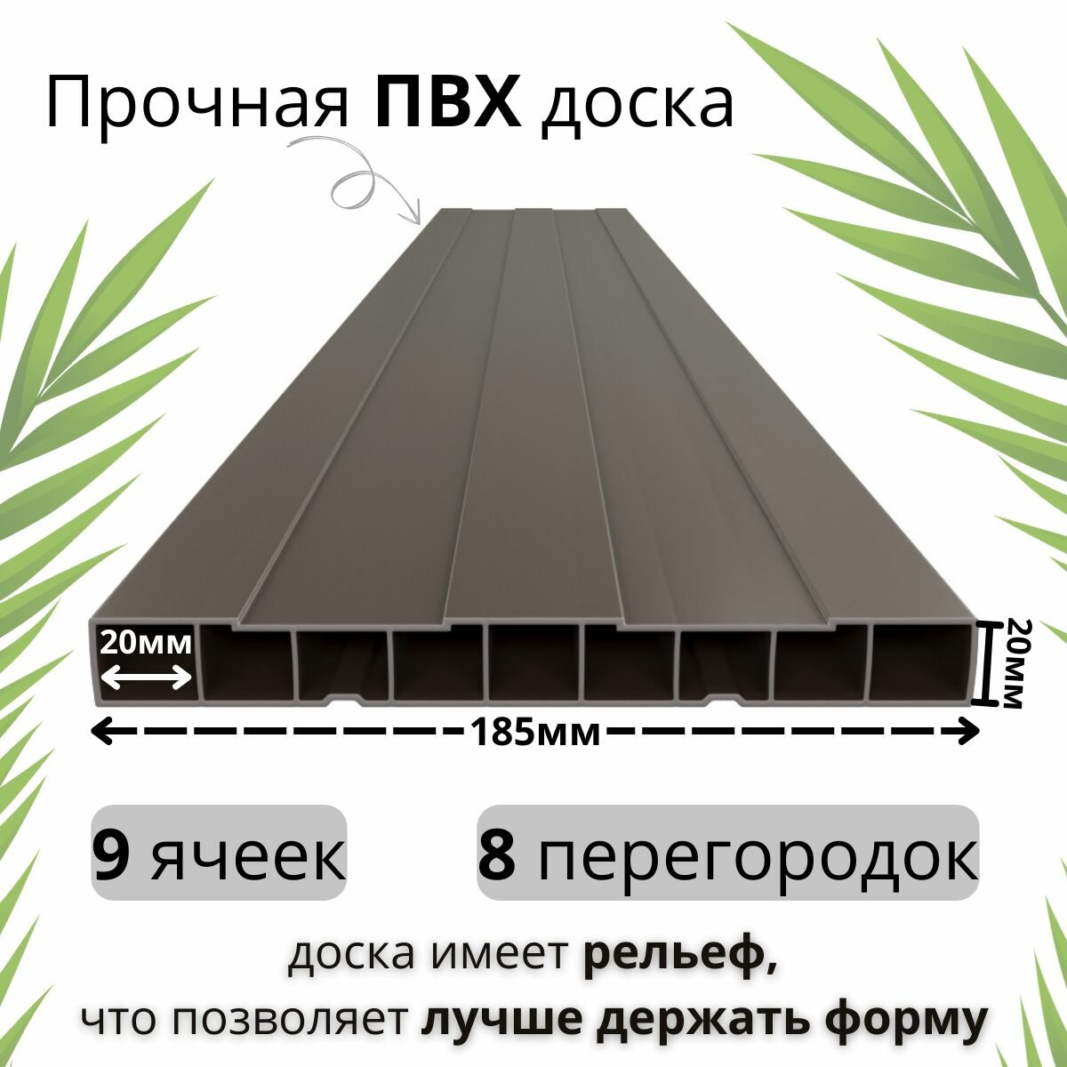 Парники Сибири/Грядка из ПВХ пластика 0,6х2,0 м, высота 18,5 см, Цвет: Коричневый