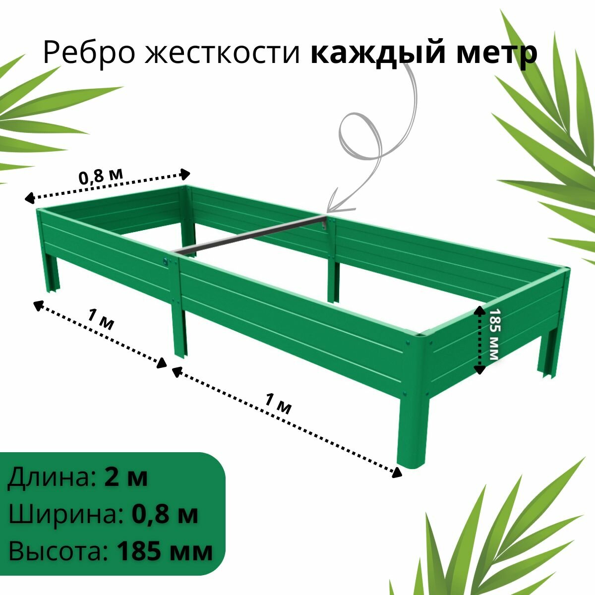 Парники Сибири/Грядка из ПВХ пластика 1,0х2,0 м, высота 18,5 см, Цвет: Зеленый