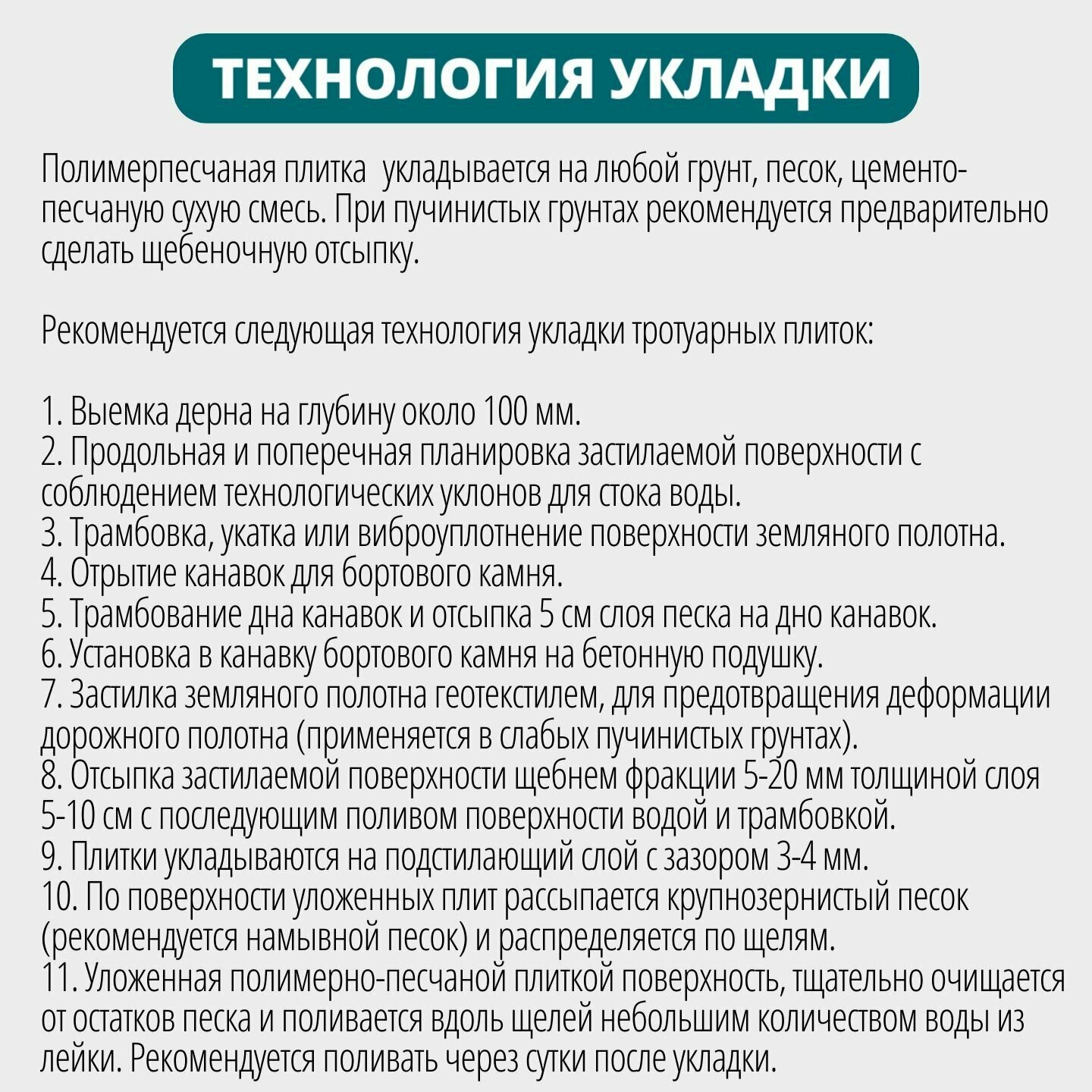 | Подробная комплектация | плитка тротуарная - 8 шт. |