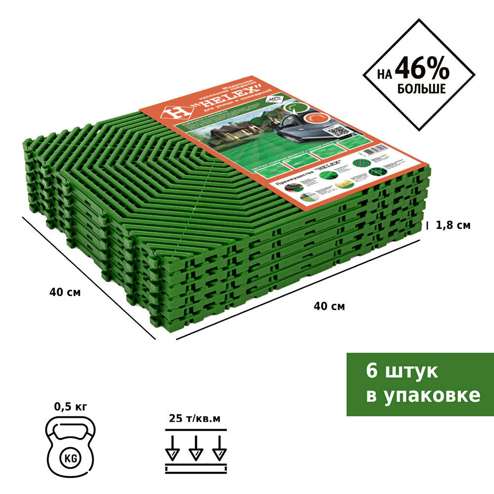 Садовое напольное покрытие HELEX (упаковка 1 м², размер 40×40 см, зелёное)