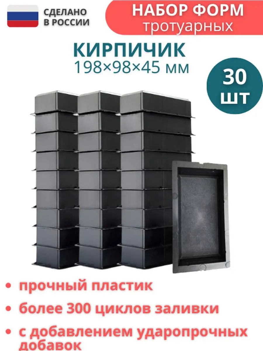 Форма для брусчатки Кирпич шагрень 198х98х45 мм, (с фаской) комплект 30 шт интересное: