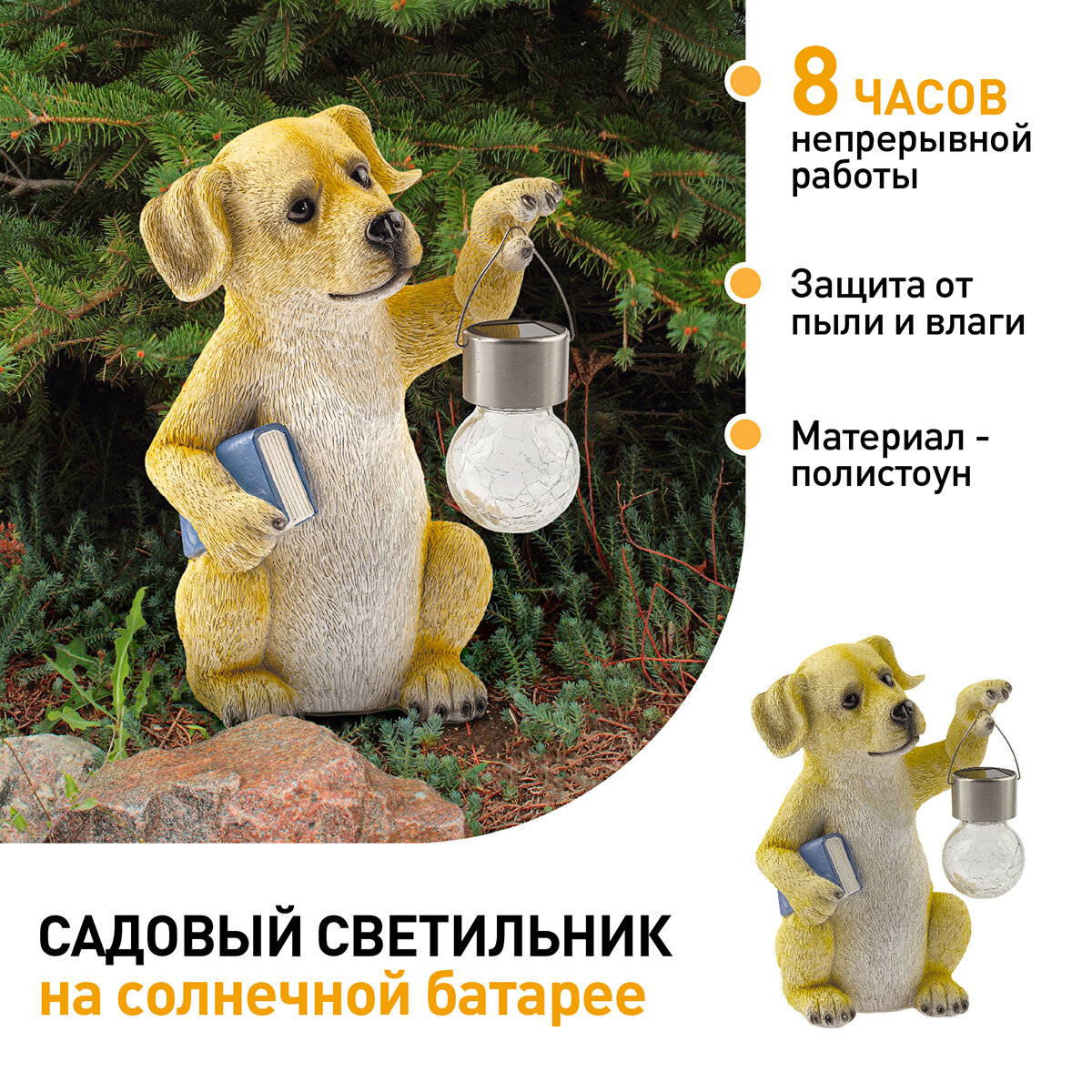 Фигурка садовая Эра «Умный пес» на солнечных батареях 27 см цвет разноцветный нейтральный белый свет
