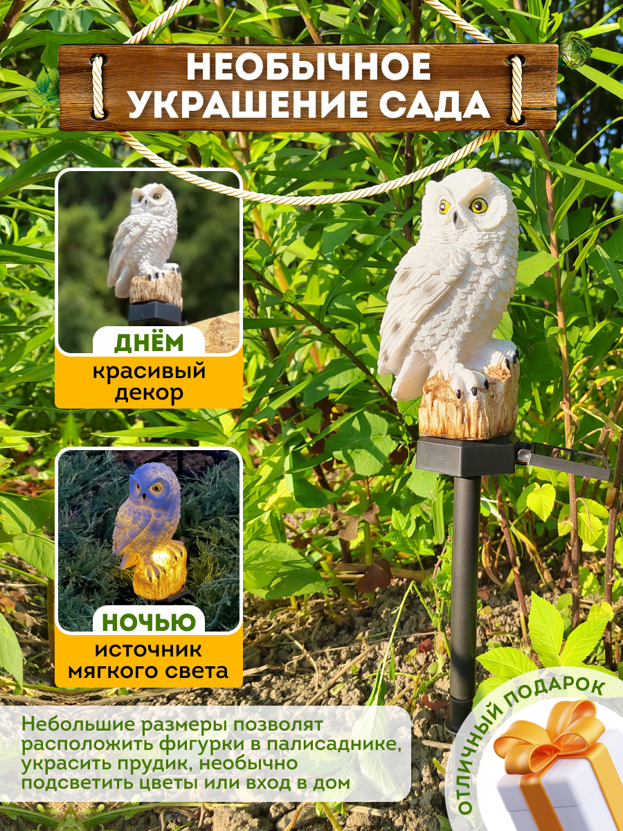 Фигурка садовая для сада и дачи. Светильник на солнечной батарее Сова интересное: