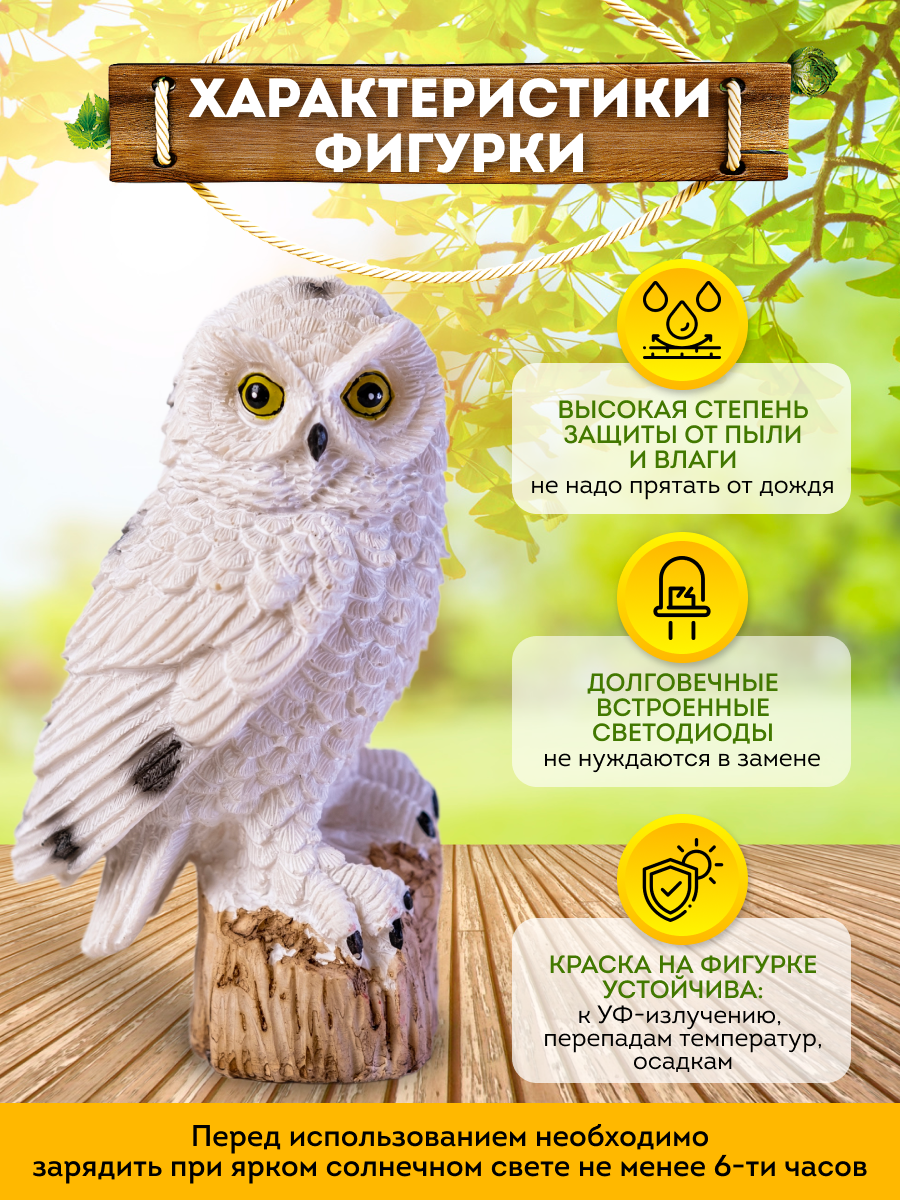 Фигурка садовая для сада и дачи. Светильник на солнечной . Сова белая 30 см