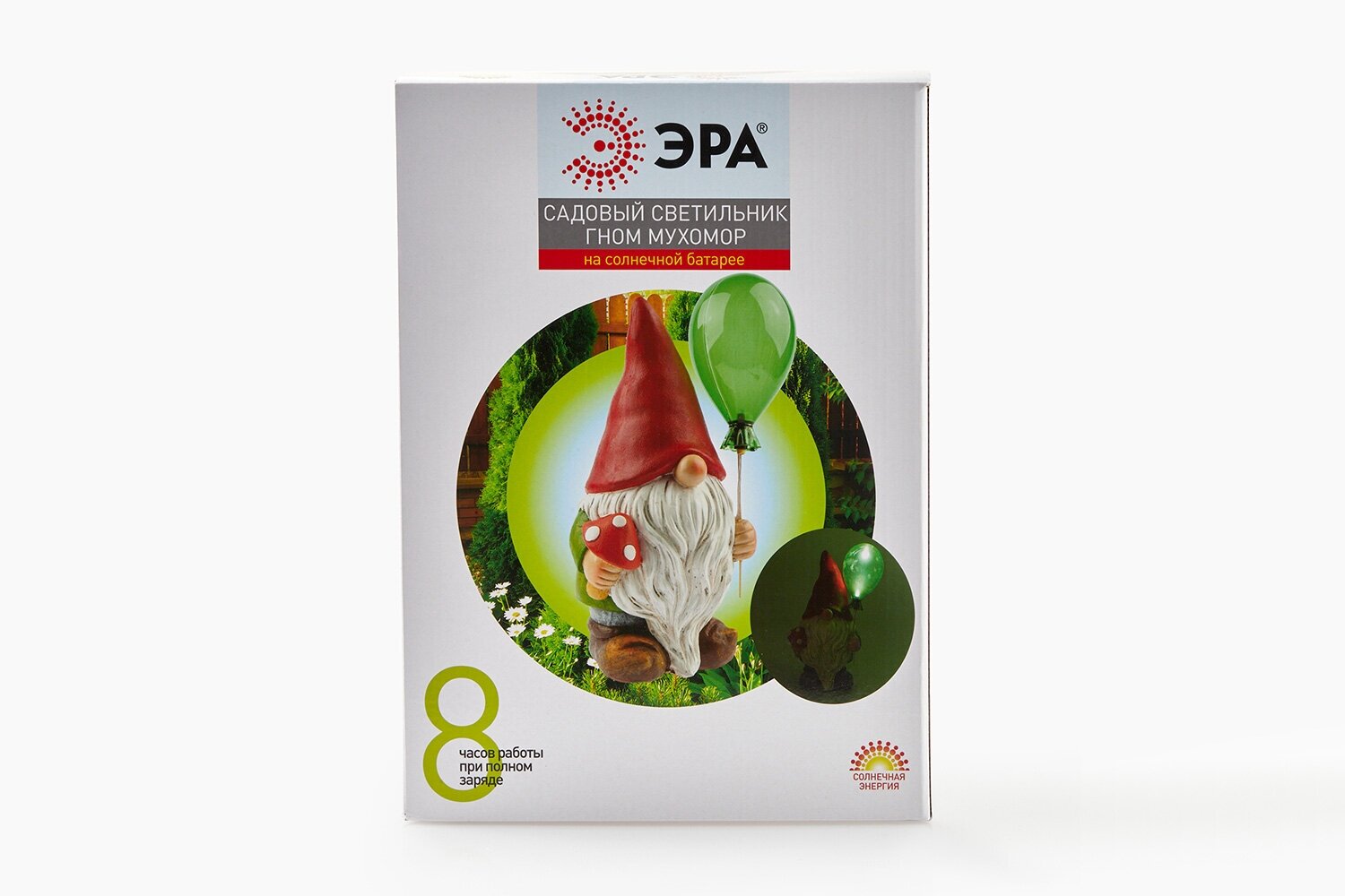 Купить Фигурка садовая Эра «Гном Мухомор с шариком» на солнечных батареях 34.5 см цвет разноцветный нейтральный белый свет