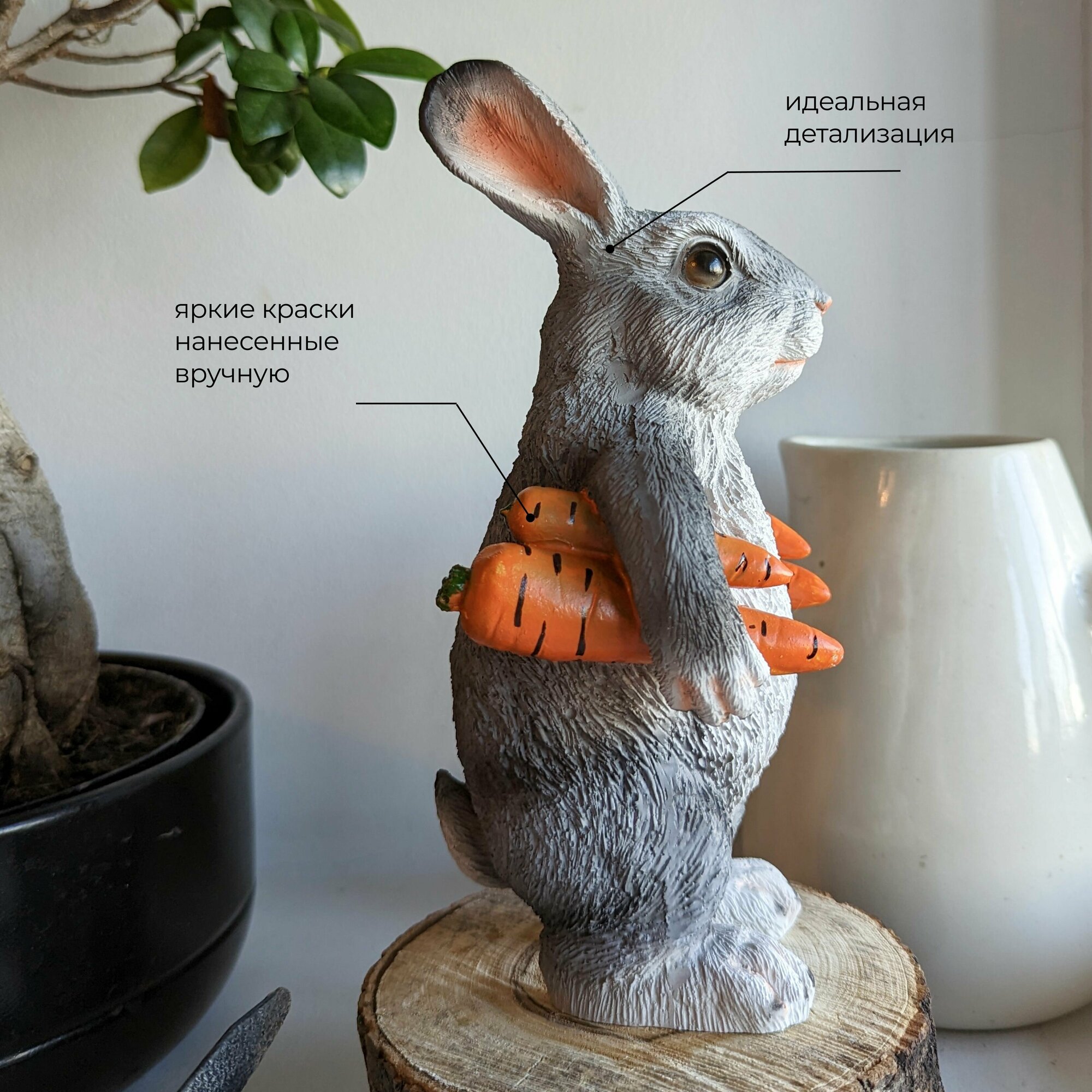 Садовая фигура "Заяц несет морковь", высота 22см. Полистоун. интересное: