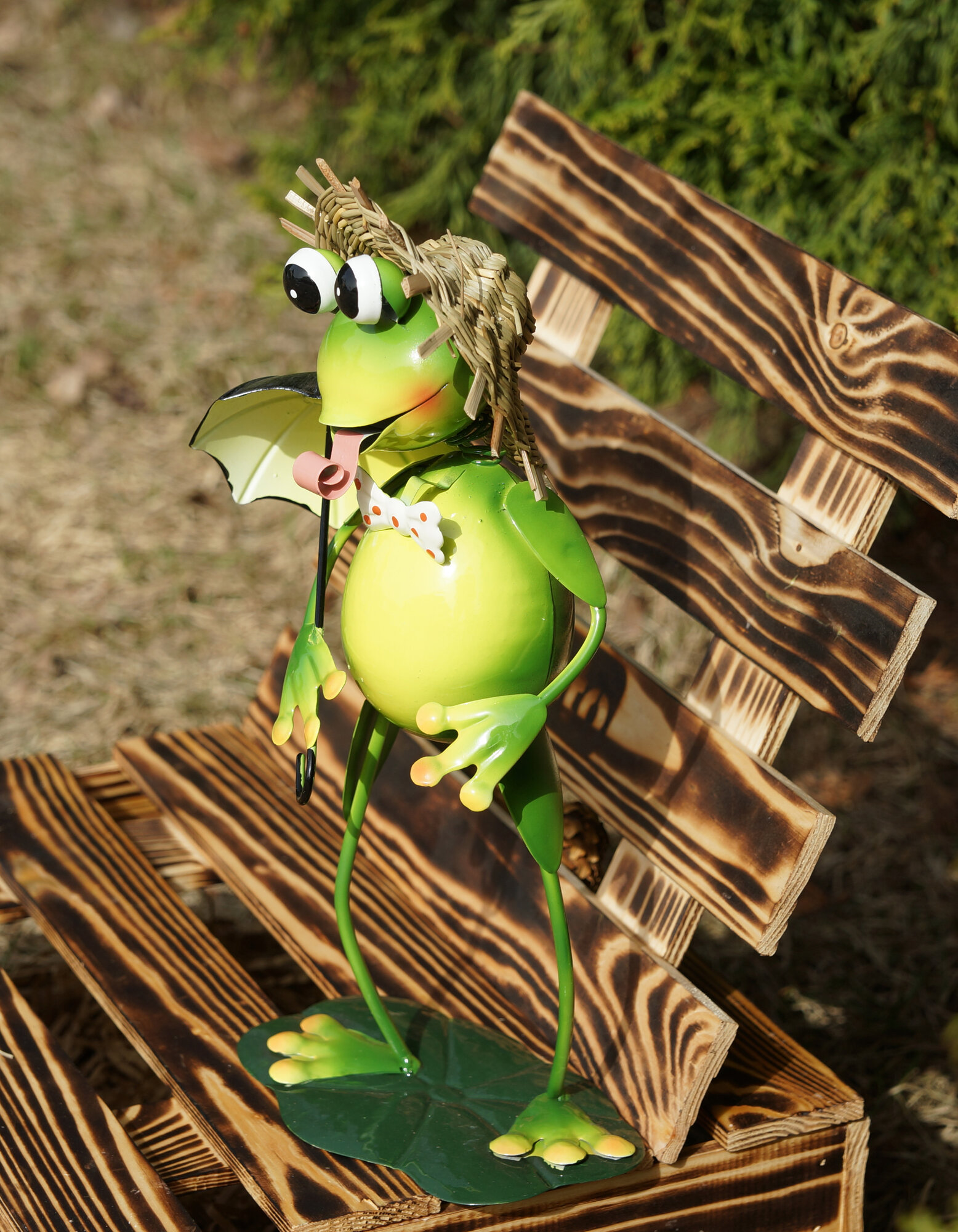 Фигурка для сада Лягушка в шляпе с зoнтикoм