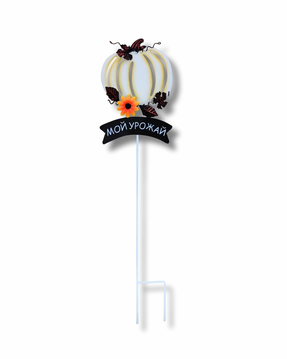 Садовый осенний декор для грядки Тыква белая "Мой урожай"