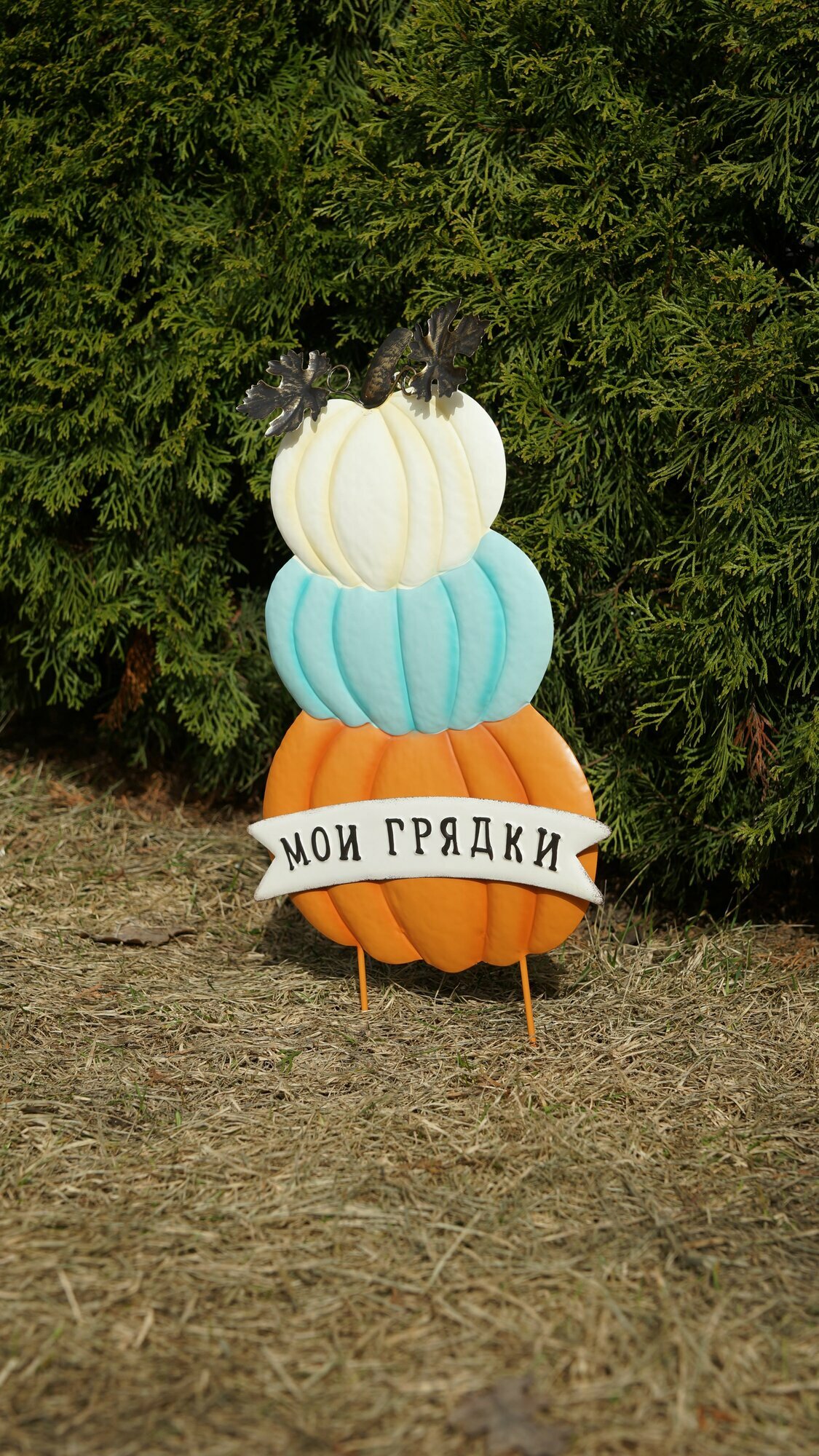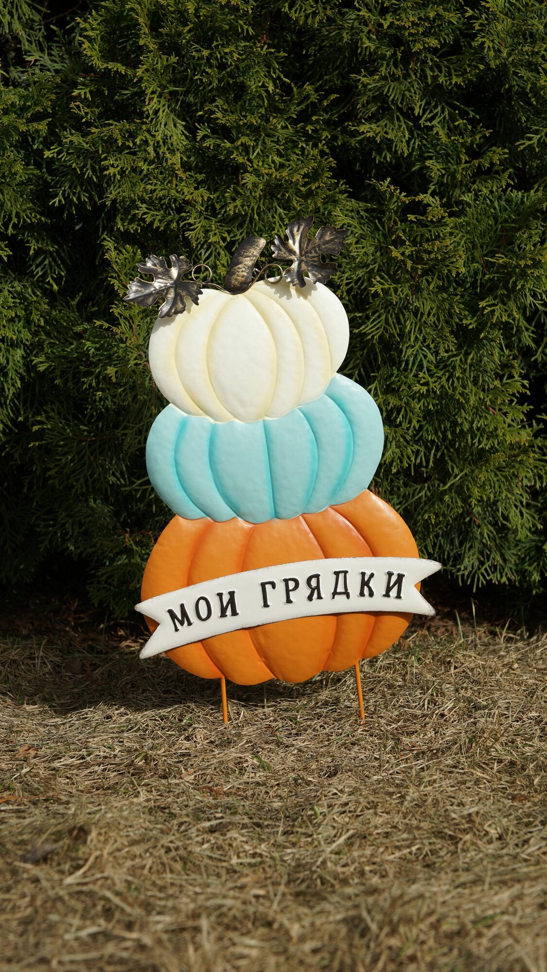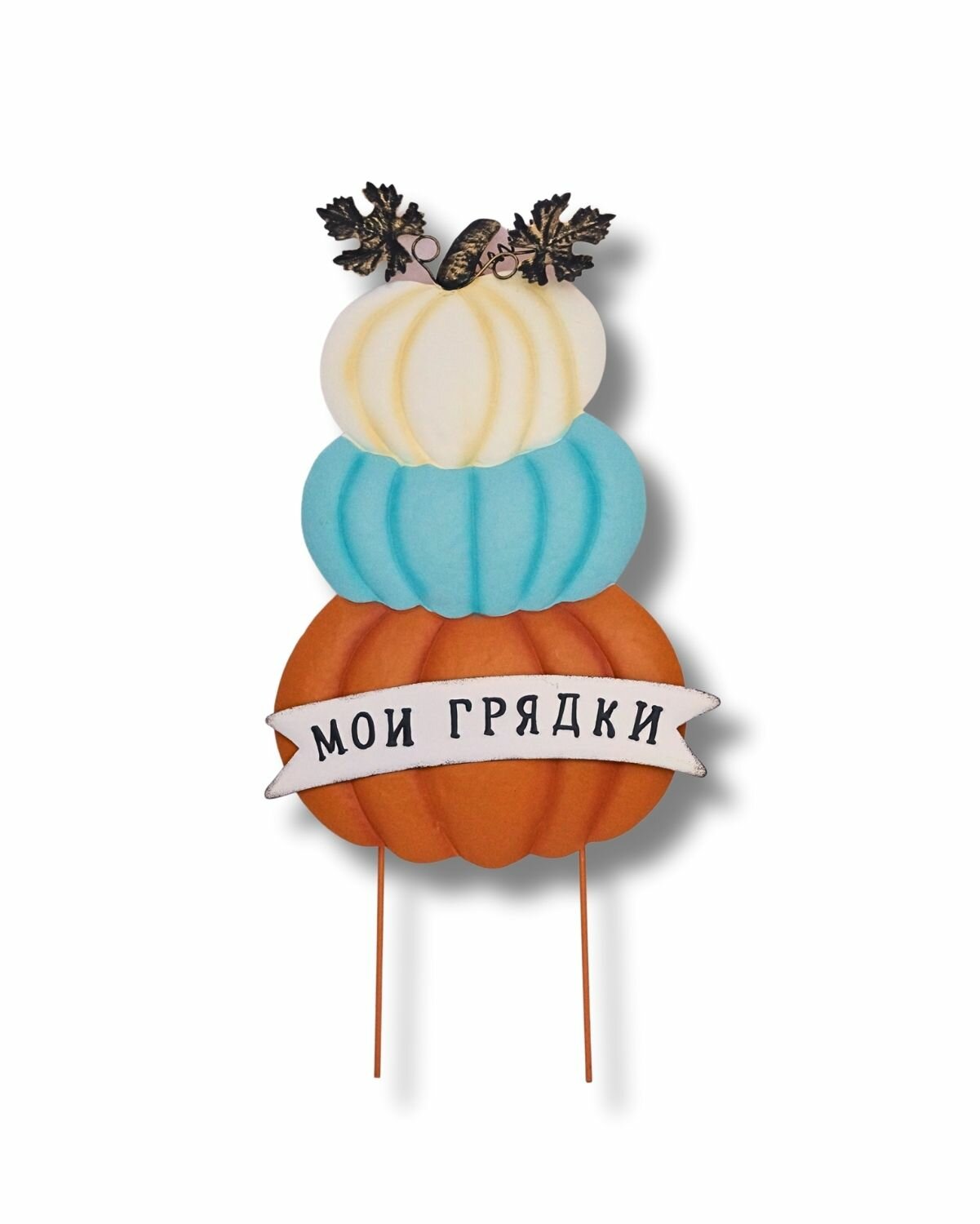 Купить Садовый декор для грядки Три тыквы "Мои грядки", оранжевый-голубой-белый (вар.2)