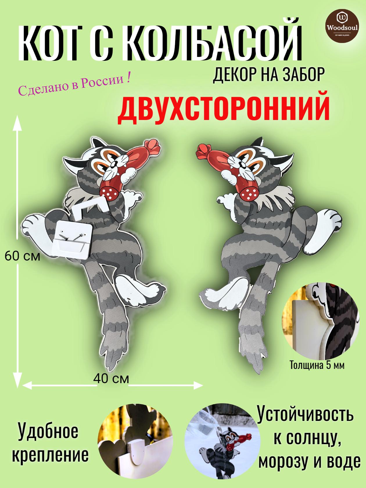 Декор для забора "Кот с Колбасой"