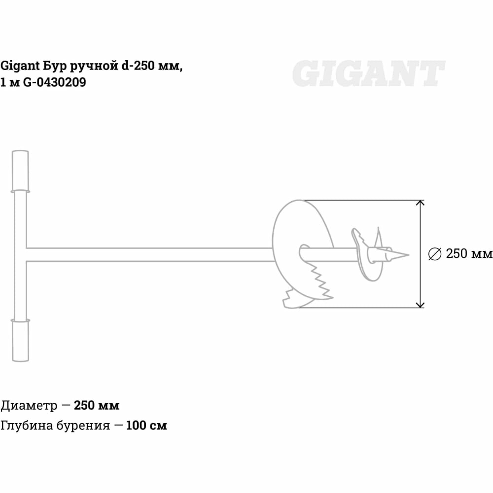 Купить Gigant Ручной бур d-250 мм, 1 метр G-0430209