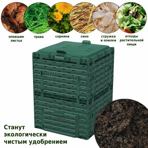 Компостер Piteco с крышкой 300л зелёный интересное: