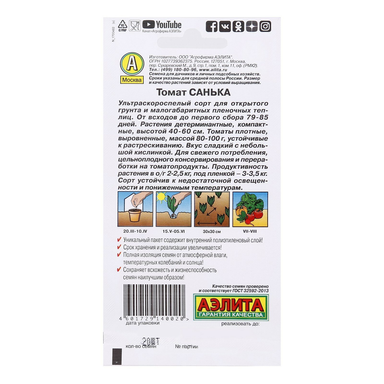 Купить Семена Томат "Санька", ультраскороспелый, 20шт.