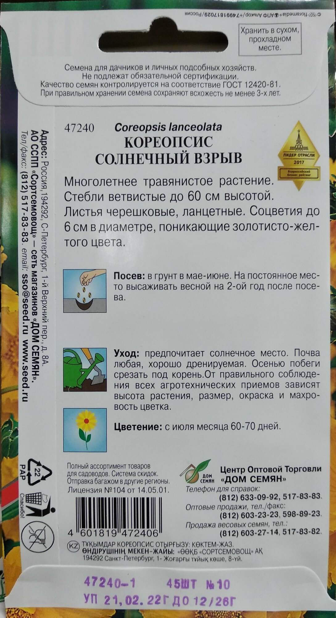 Кореопсис многолетний Солнечный взрыв, 45 шт семян интересное: