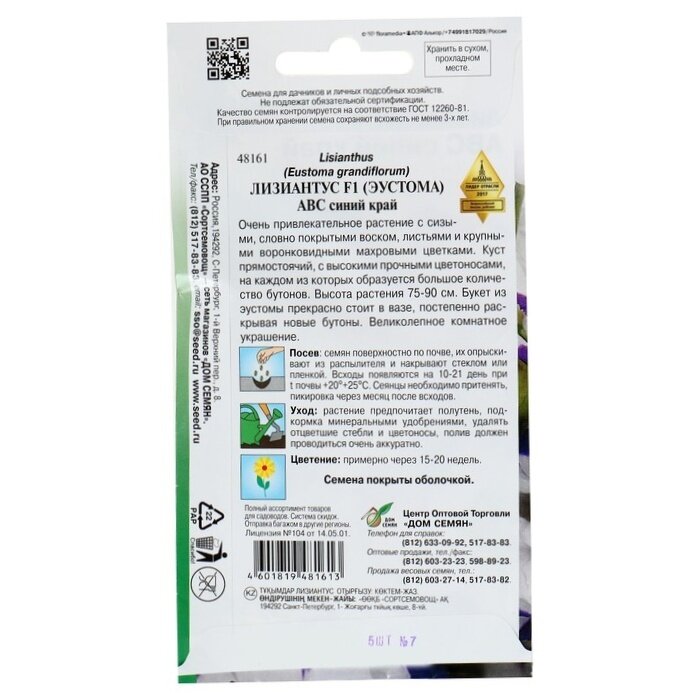 "Лизиантус F1 (Эустома) АВС синий край, 5 семян" интересное: