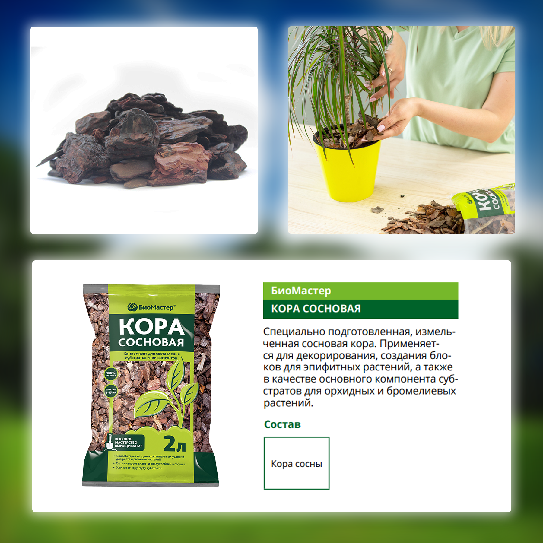 | Состав | Кора сосновая БиоМастер, 2 л |