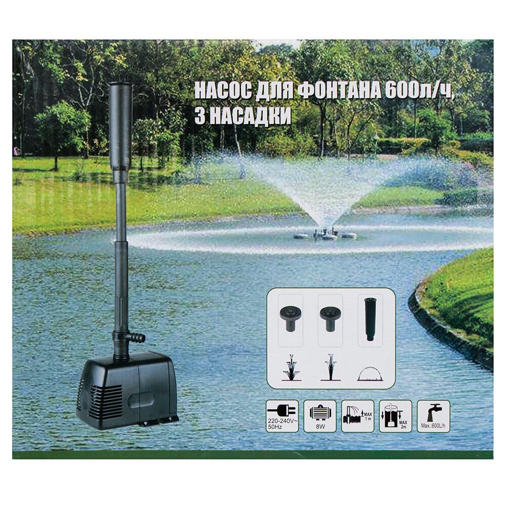 Насос для фонтана 600 л/ч 3 насадки в комплекте интересное: