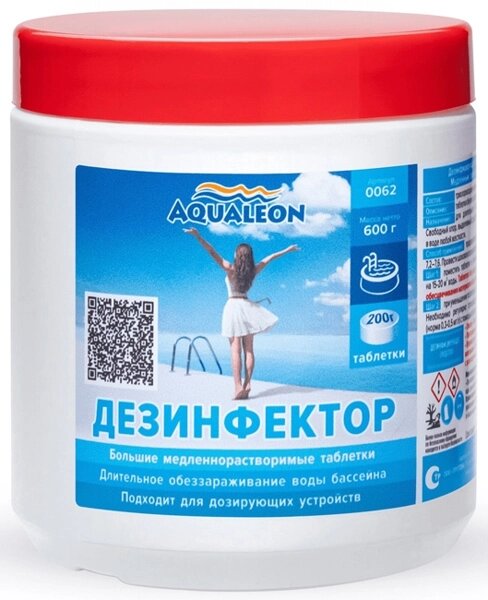Ниже Вы можете прочитать отзывы на Aqualeon Дезинфектор МСХ (в таблетках 200 г) 0,6 кг, арт. 0062, ознакомится с подробными характеристиками, посмотреть интересные обзоры и фотографии на Aqualeon Дезинфектор МСХ (в таблетках 200 г) 0,6 кг, арт. 0062.
