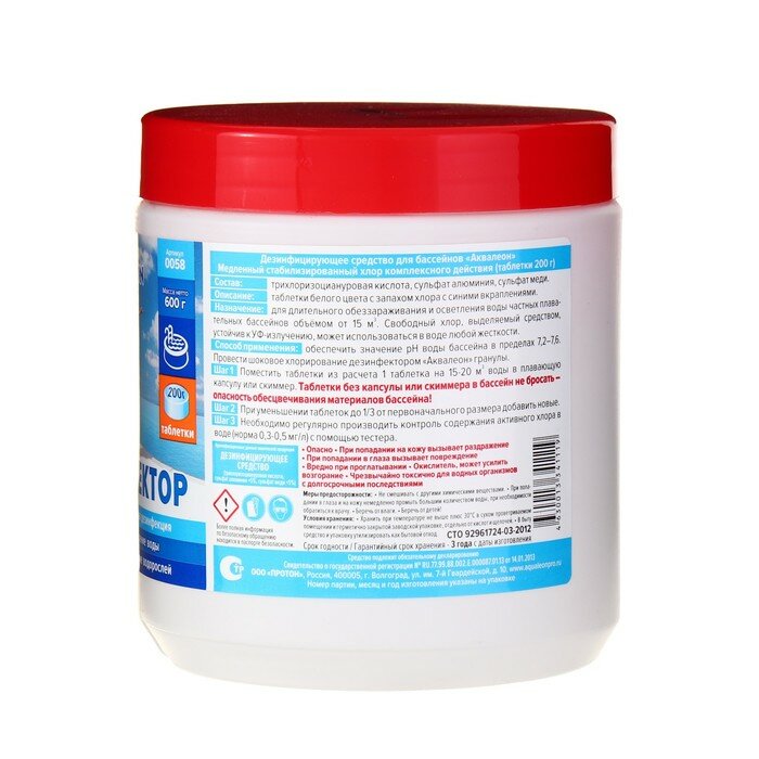 Ниже Вы можете прочитать отзывы на Дезинфектор медленный хлор Aqualeon в таблетках по 200 гр., 0,6 кг, ознакомится с подробными характеристиками, посмотреть интересные обзоры и фотографии на Дезинфектор медленный хлор Aqualeon в таблетках по 200 гр., 0,6 кг.