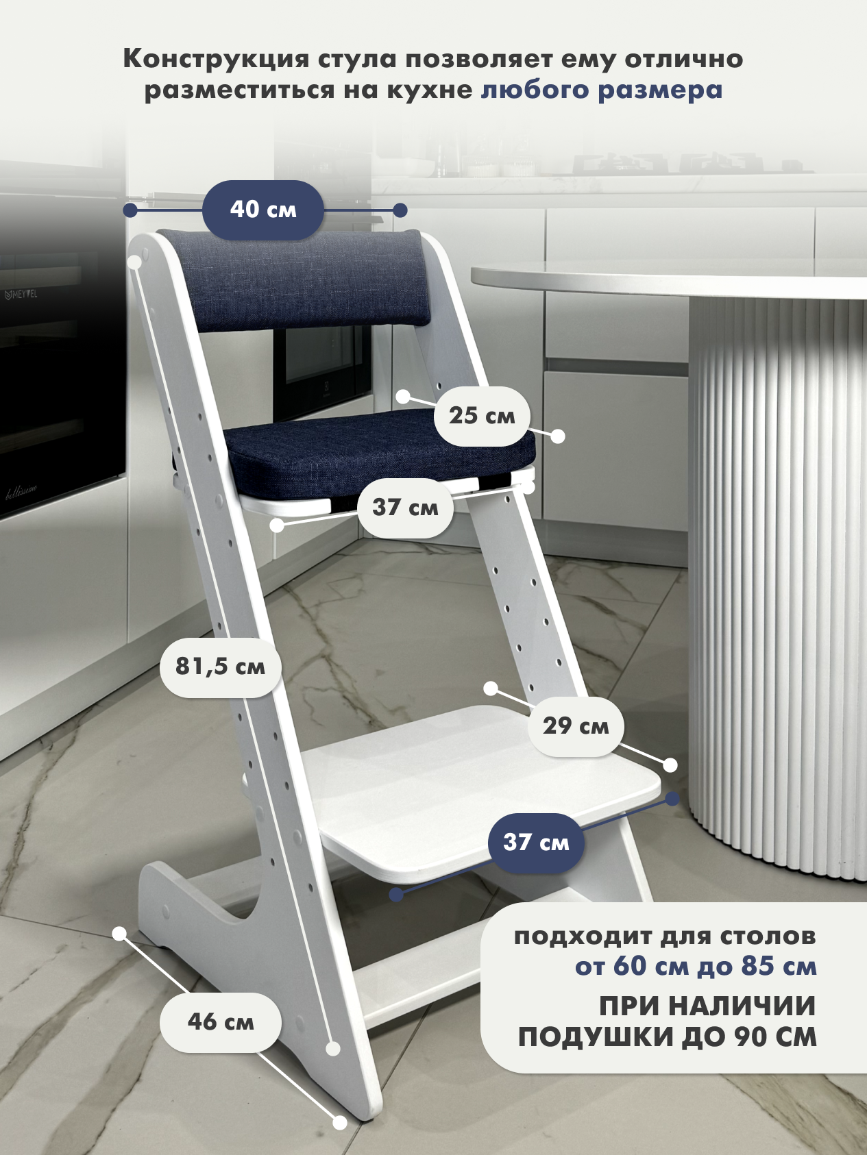 Растущий стул Панда белый с подушками синими интересное: