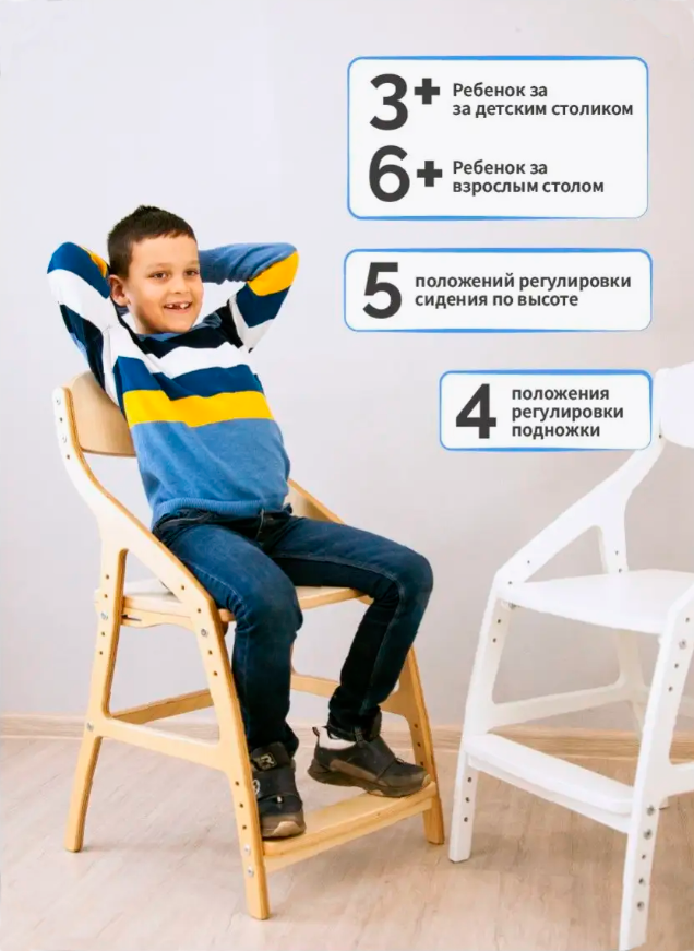 Растущий стул для детей от 4-х лет, цвет Натуральное дерево интересное: