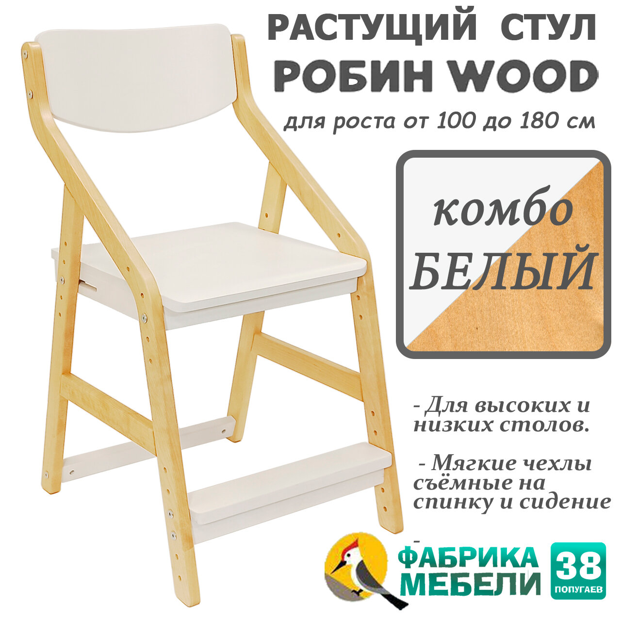 Ниже Вы можете прочитать отзывы на Стул растущий для школьника Робин Wood (Вуд) с чехлом, цвет Комбо белый/Серый, ознакомится с подробными характеристиками, посмотреть интересные обзоры и фотографии на Стул растущий для школьника Робин Wood (Вуд) с чехлом, цвет Комбо белый/Серый.