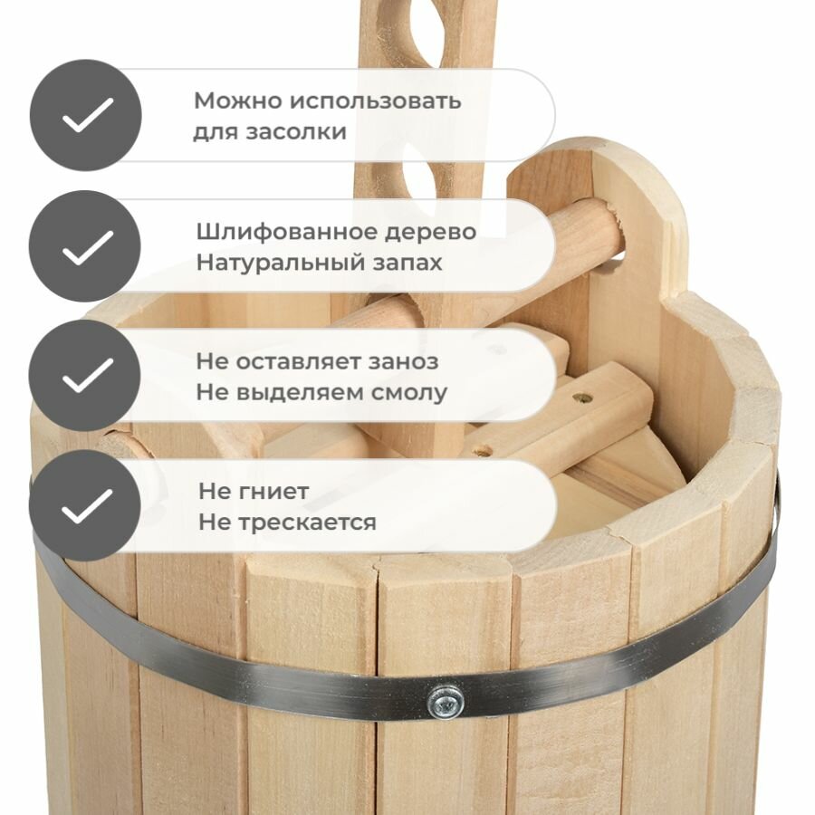 Кадка для воды и заготовки солений, 10 л, с гнётом и замком, липа Класс Б "Банные штучки"