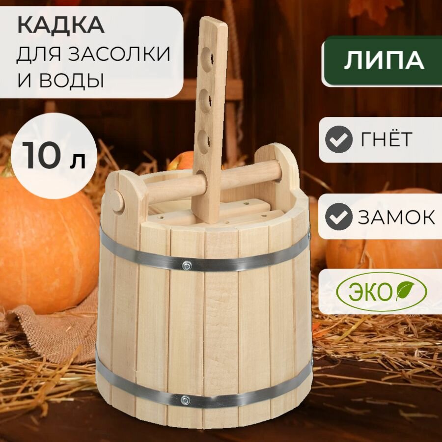 Кадка для воды и солений Банные штучки, с замком и гнетом, липа, 10 л интересное: