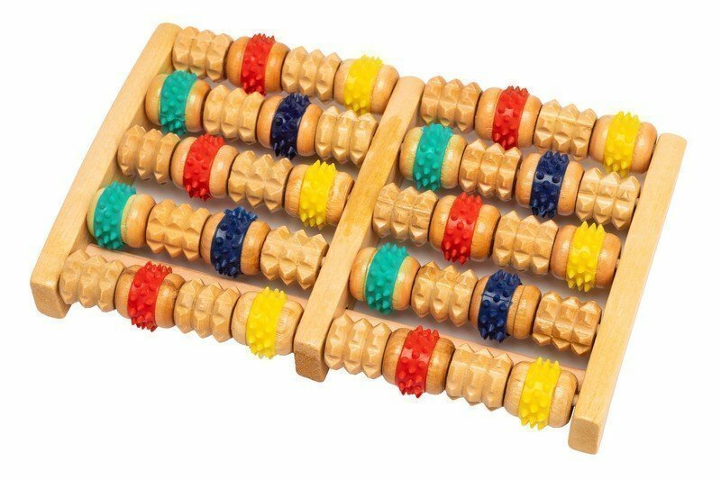 Деревянный массажер для ног с шипами и дополнительными роликами, BRADEX