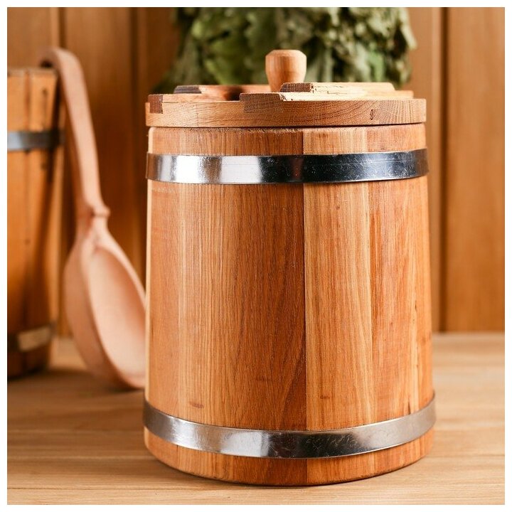 Кадка-бочка для засолки дубовая, 5 л, нержавеющий обруч, с крышкой, с гнетом интересное: