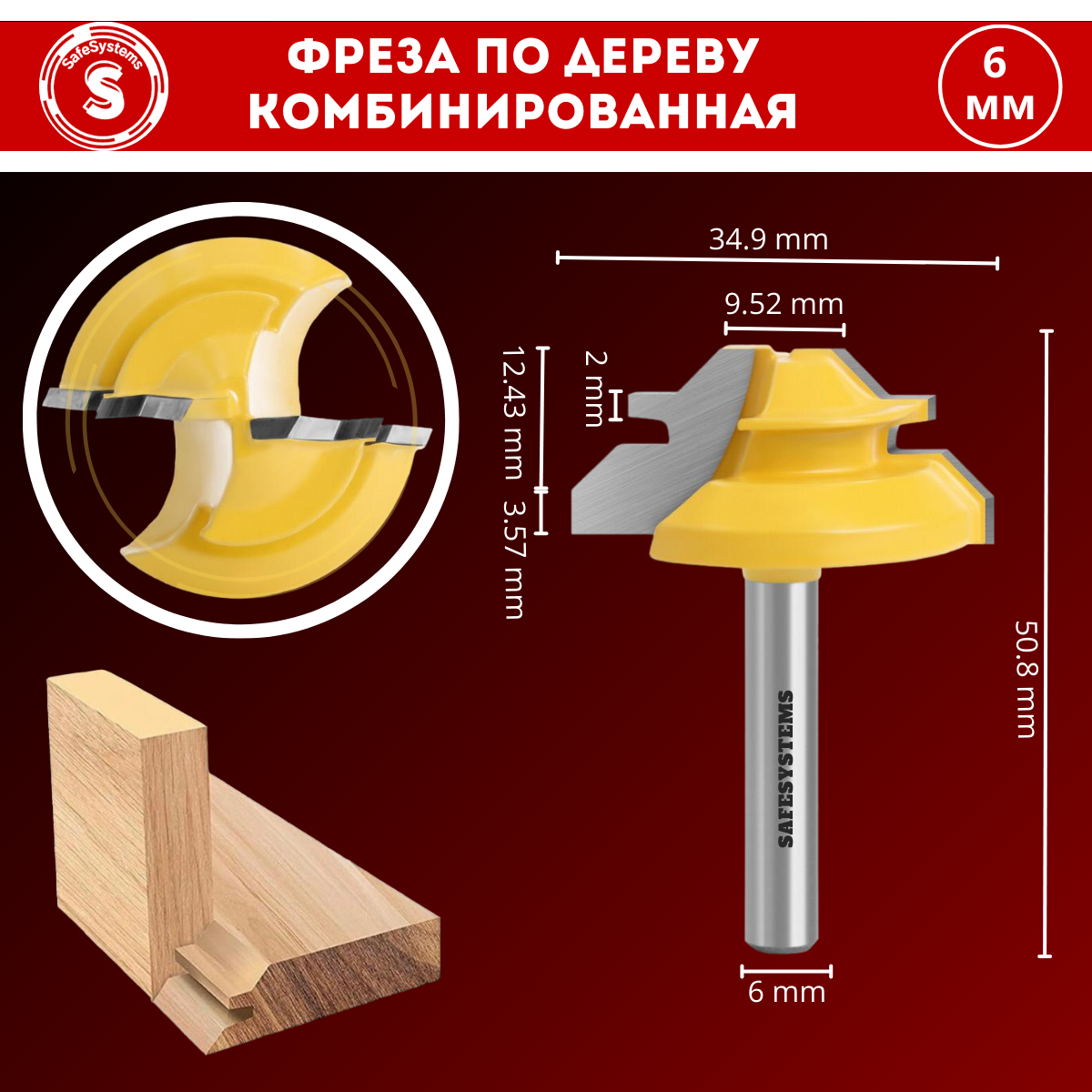 Фреза по дереву SafeSystems комбинированная для углового сращивания, хвостовик 8 мм
