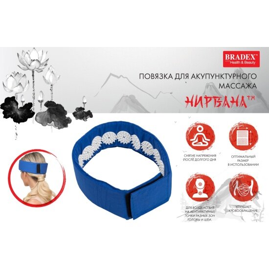 Повязка для акупунктурного массажа Нирвана Bradex, синий / Массажер акупунктурный от мигрени / Аппликатор Кузнецова