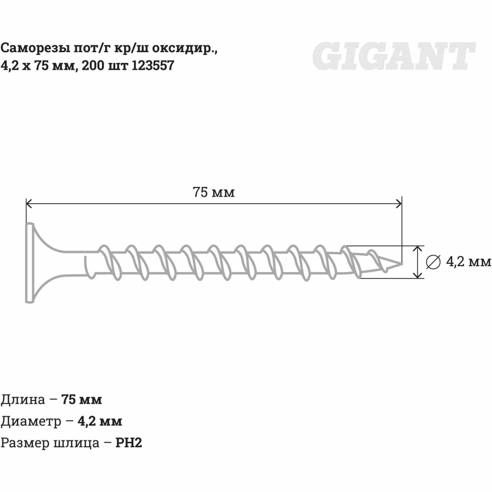 Gigant Саморезы пот/г кр/ш оксидир., 4,2x75 200 шт 123557 интересное: