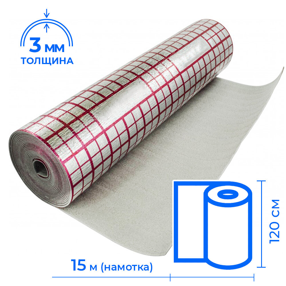 Подложка лавсан с разметкой под ламинат, линолеум и паркет, вспененная, под тёплый пол, толщина 3 мм, 18 м2 интересное: