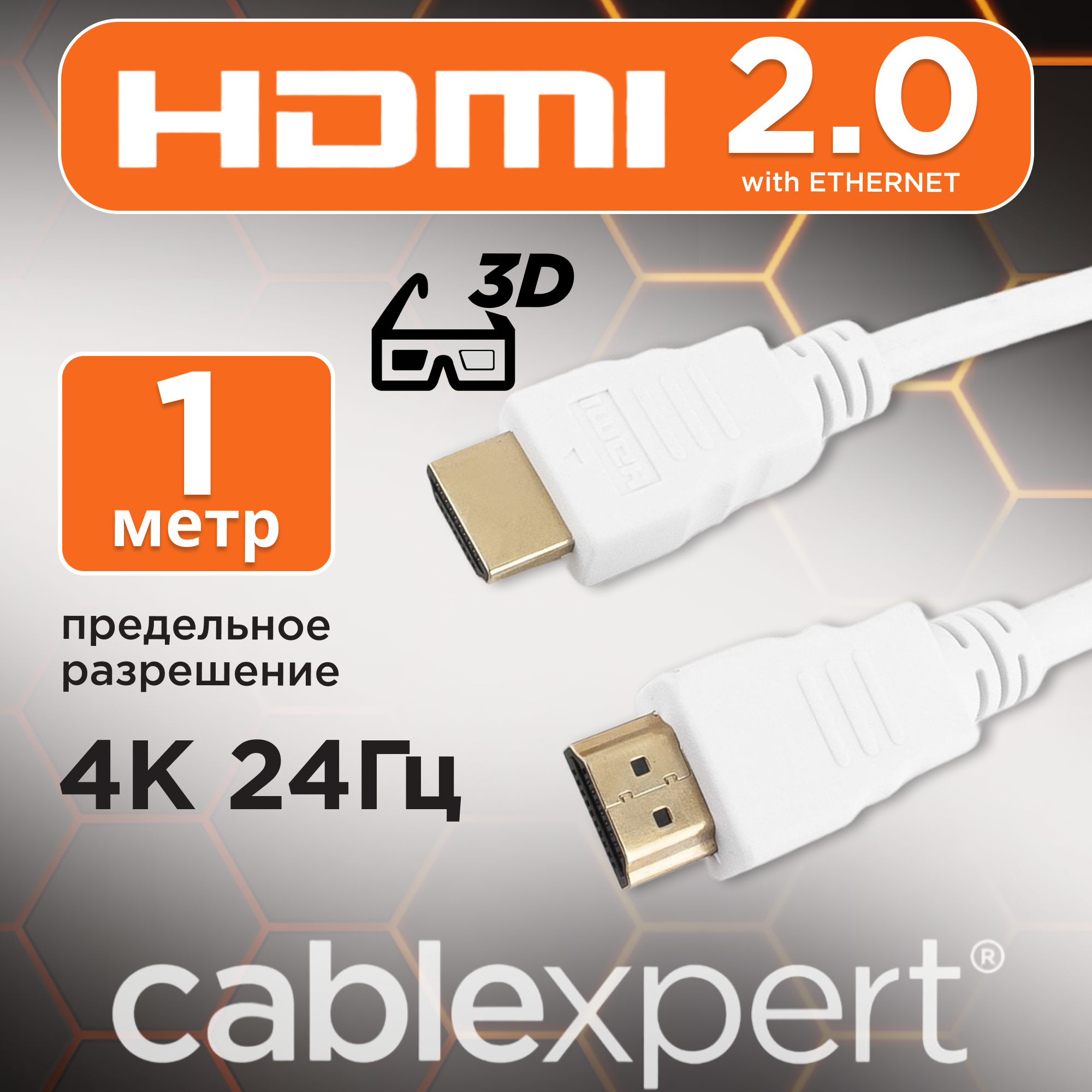 Кабель HDMI V2.0 4K Cablexpert CC-HDMI4-W-1M 19М-19М, белый - 1 метр