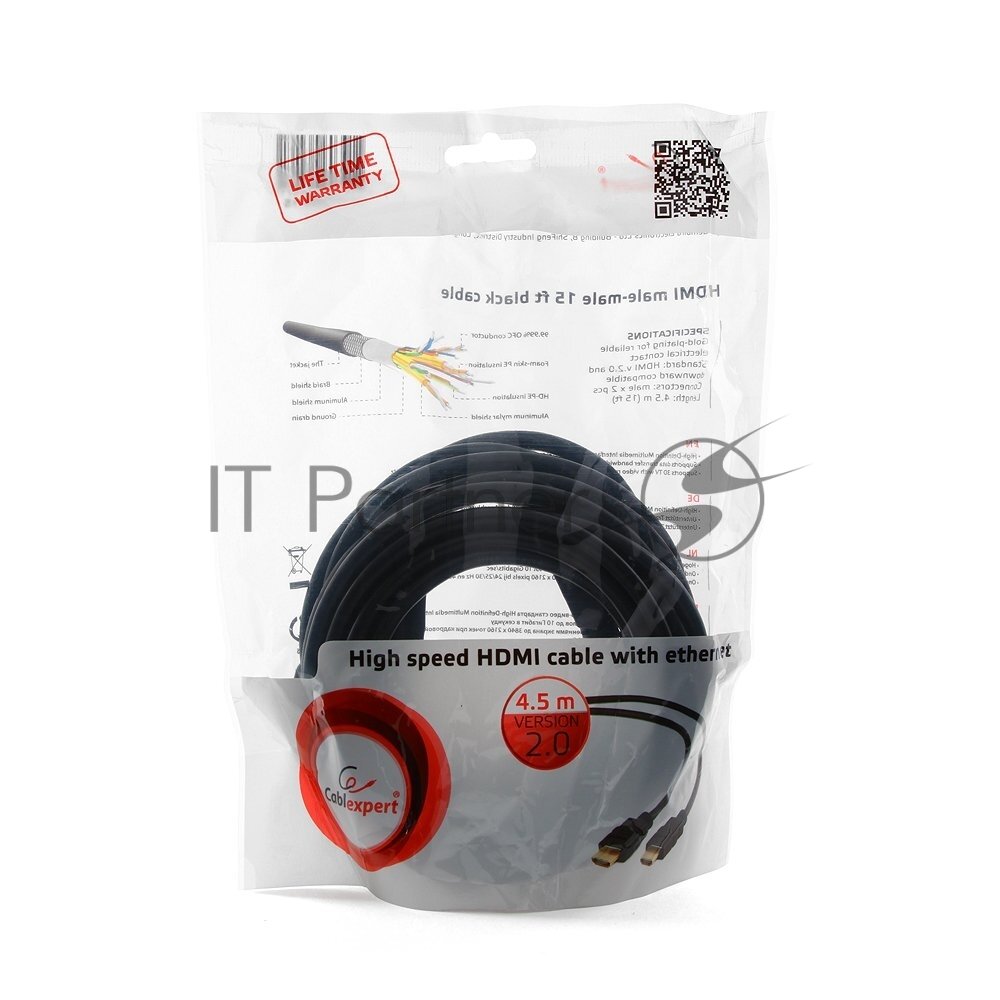 Cablexpert Кабель HDMI 4.5м v2.0 19M/19M медь, черный позол.разъемы экран пакет CC-HDMI4-15