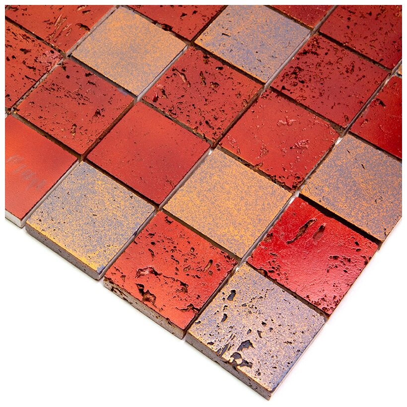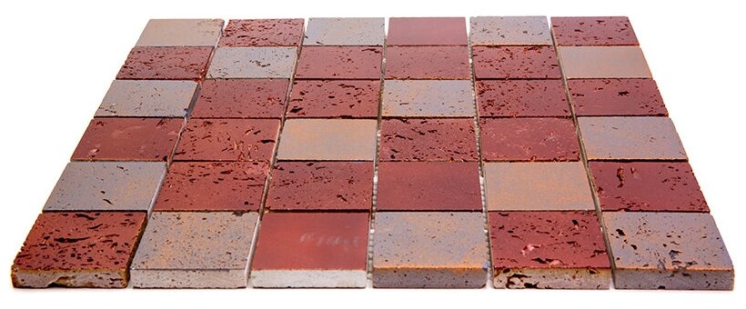 Мозаика Skalini GRD-3 из глянцево-матового (микс) травертина размер 30.5х30.5 см чип 48x48 мм толщ. 10 мм площадь 0.093 м2 на сетке интересное: