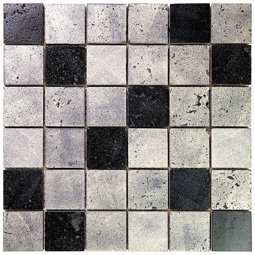 Купить Мозаика Skalini RDK-3 из глянцево-матового (микс) травертина размер 30.5х30.5 см чип 48x48 мм толщ. 10 мм площадь 0.093 м2 на сетке