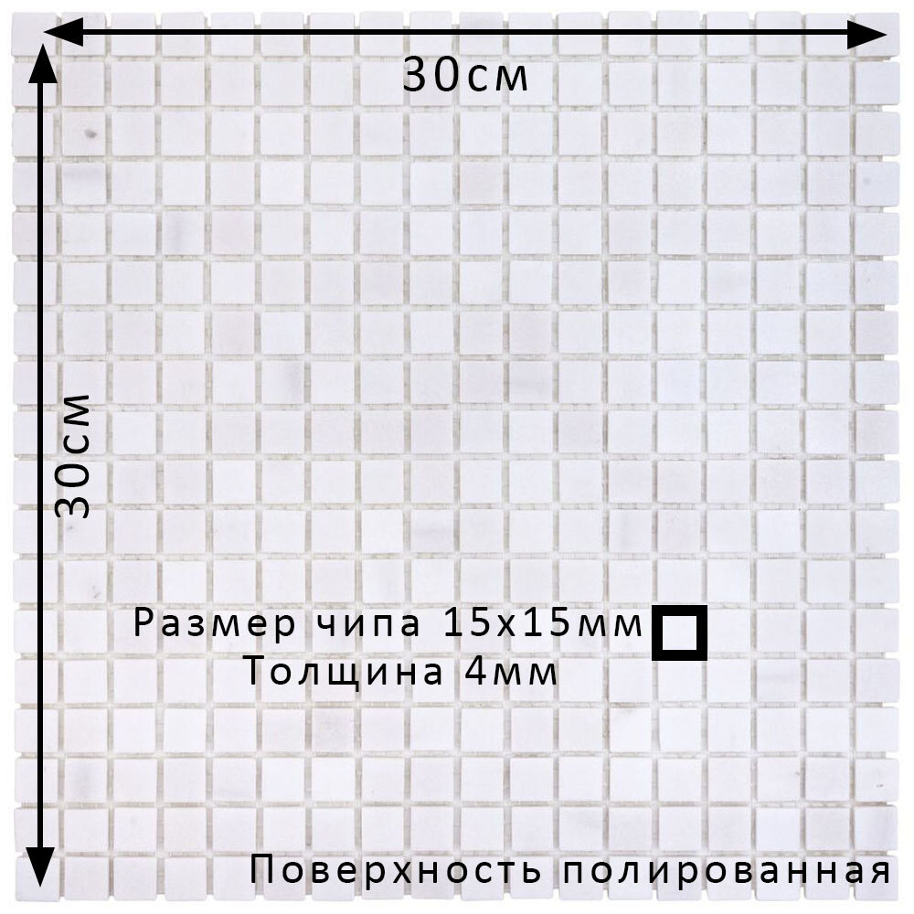Купить Мозаика из натурального мрамора Snow White DAO-608-15-4. Глянцевая. Размер 300х300мм. Толщина 4мм. Цвет белый. 1 лист. Площадь 0.09м2