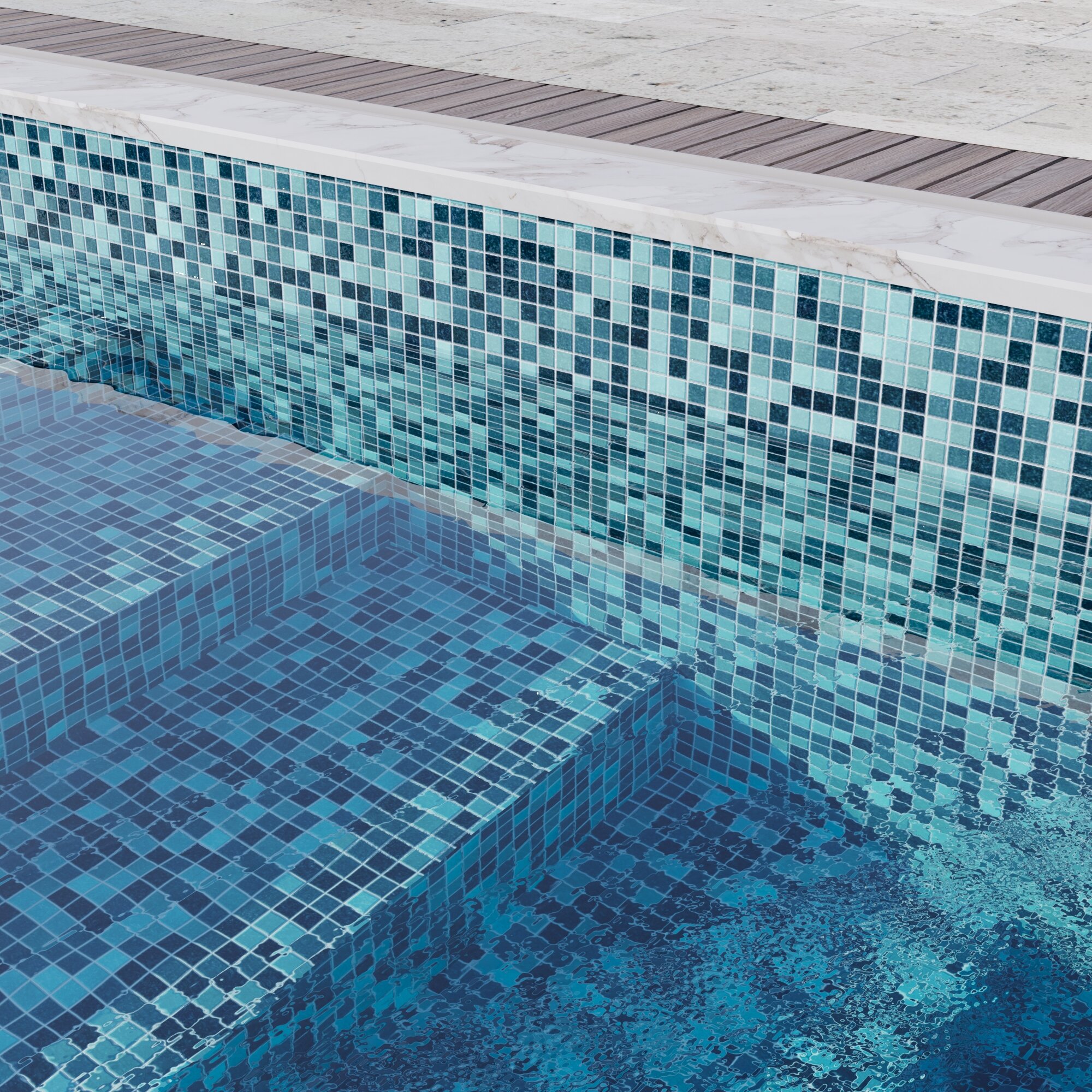 Мозаика Natural STP-BL014 из глянцевого стекла размер 31.5х31.5 см чип 25x25 мм толщ. 5 мм площадь 0.099 м2 на сетке