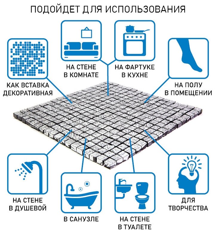 Мозаика Natural STP-BL014 из глянцевого стекла размер 31.5х31.5 см чип 25x25 мм толщ. 5 мм площадь 0.099 м2 на сетке
