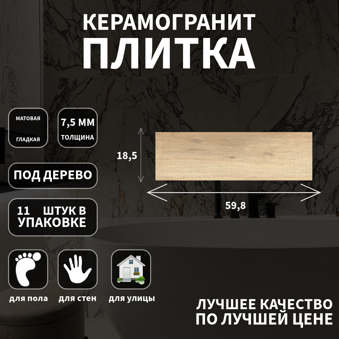 Керамогранитная плитка Cersanit, коллекция: Stockholm бежевый, эффект: дерево, поверхность: матовый, 18,5х59.8х0.75 интересное: