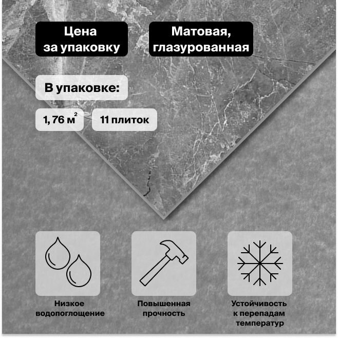 | Дополнительная информация | тон (оттенок) плитки может отличаться от партии к партии; каждая новая партия плитки имеет оттенок, отличающийся от оттенка предыдущей партии в силу особенностей производственного процесса плитки; отличие тона плитки разных партий не является производственным браком продукции |
