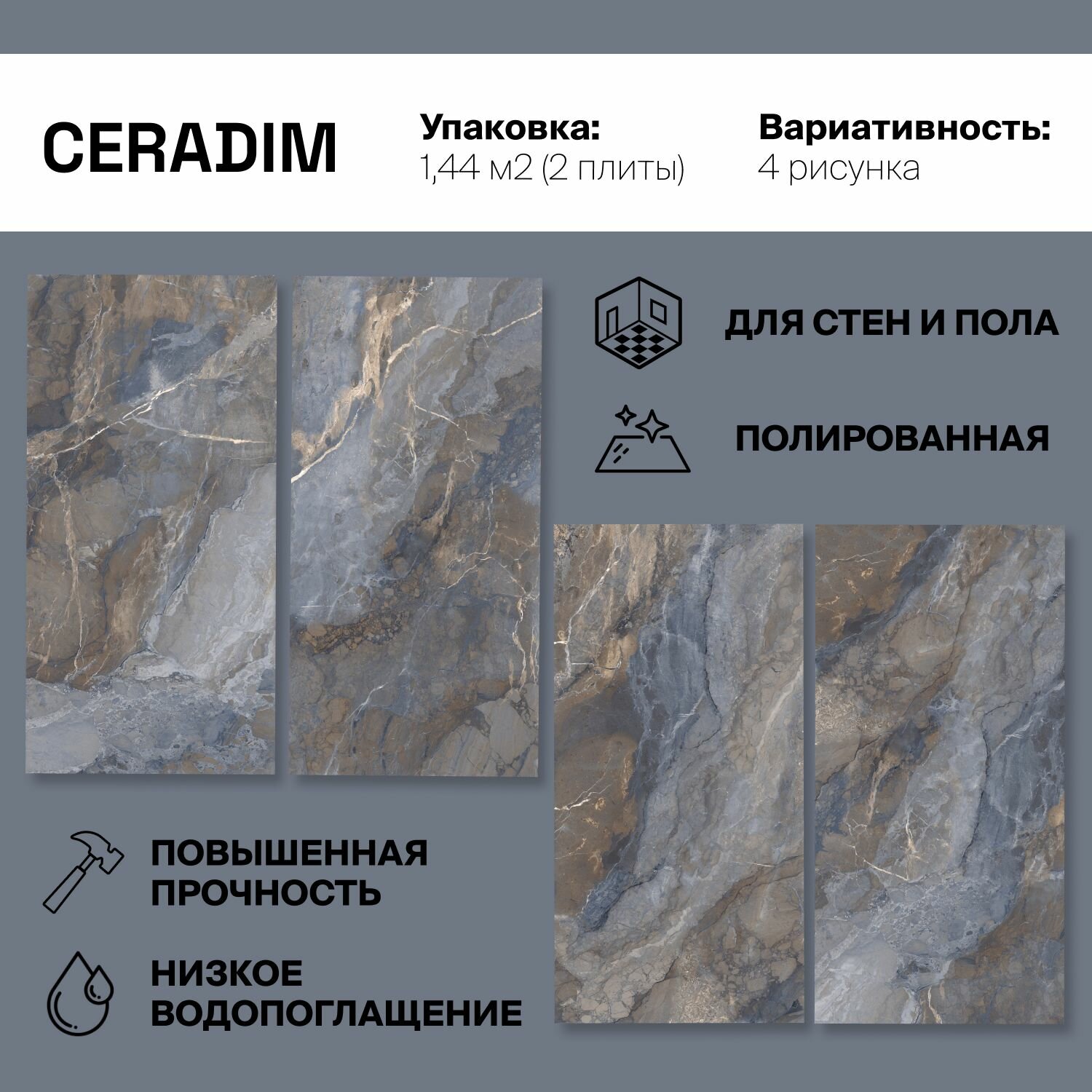 Купить Керамогранит Ceradim Ocean Elfish синий 60х120 Полированный уп. 1.44 м2 (2 плитки)