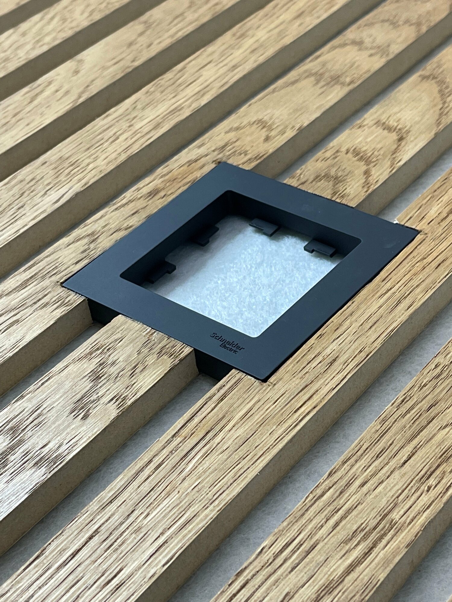 Акустическая реечная панель AKUPANEL - Декоративные рейки (Шпон, Дуб "Бурбон") и чёрная акустическая панель Акупанель