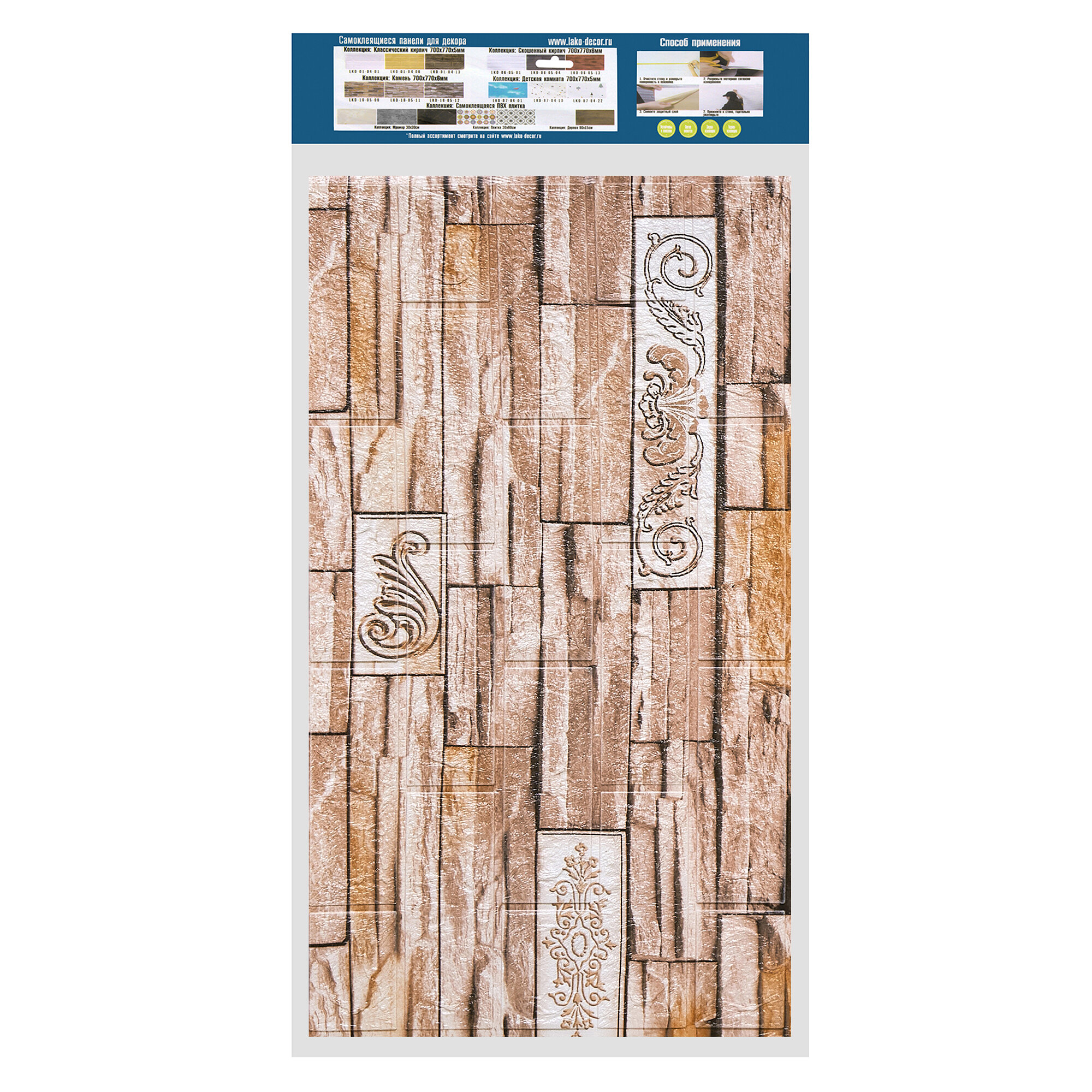 | Дополнительная информация | Если панель отклеивается от поверхности, рекомендуем приклеить фирменным клеем жидкие гвозди от LAKO DECOR |