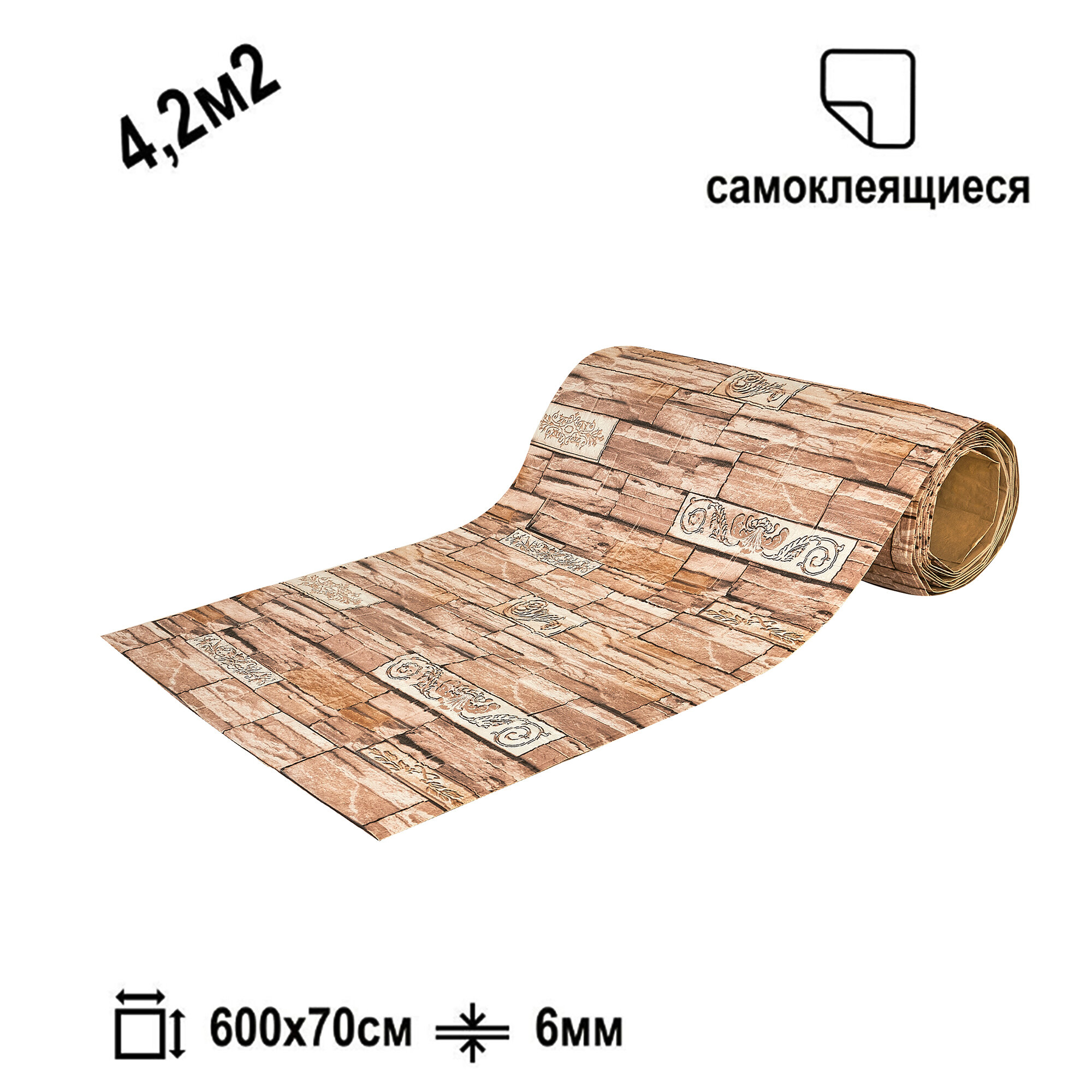 Самоклеящаяся ПВХ 3D-панель для стен в рулоне LAKO DECOR, Каменная кладка 12, 70x600см, толщина 6мм