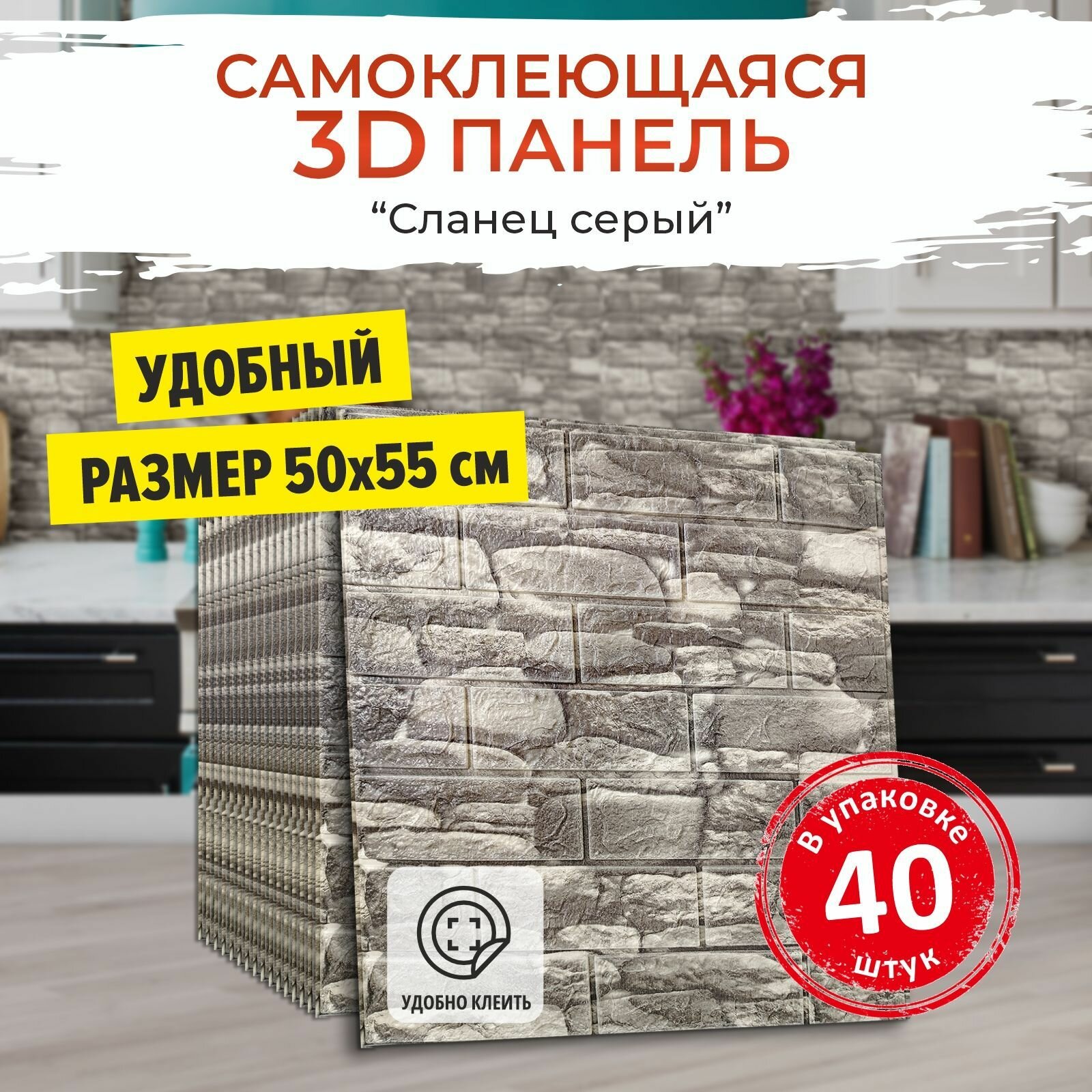 Купить "Сланец серый" 40 шт. мягкие 3д ПВХ панели самоклеющиеся для стен и потолка 500*550*4 мм обои для кухни моющиеся и плитка в ванну на стены