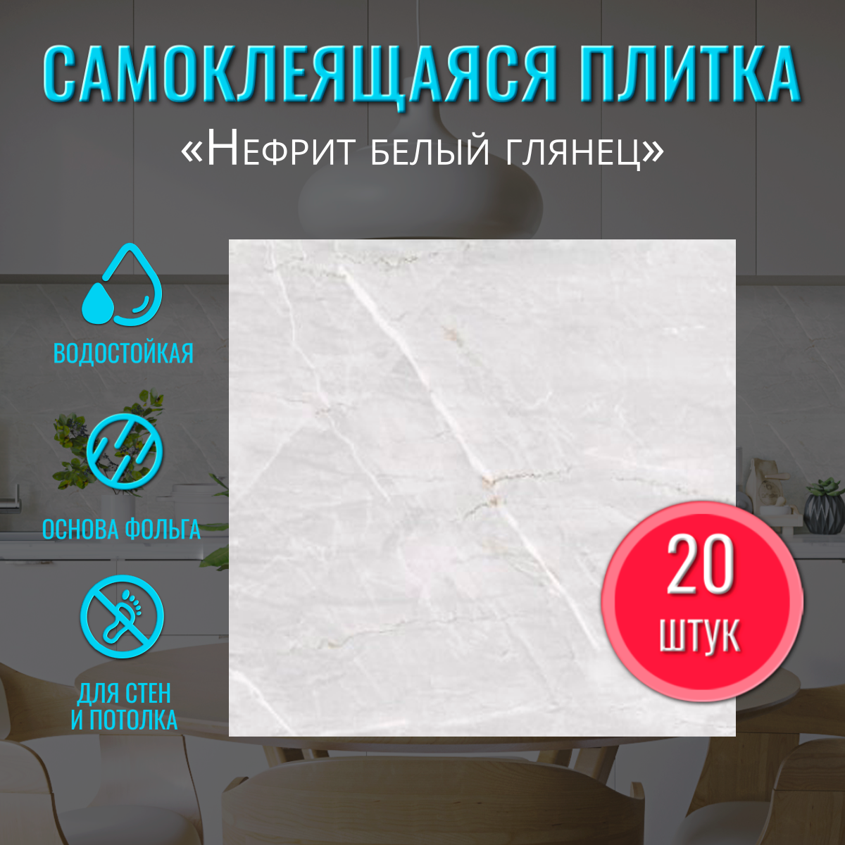 Купить Плитка ПВХ самоклеющаяся на стену в ванную или для кухни "Нефрит белый" 30х30 см 20 шт. самоклеящаяся панель декор на стену вместо кухонного фартука