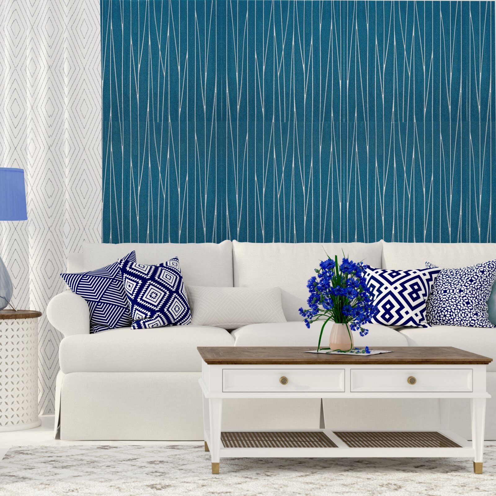 Купить Самоклеющаяся панель для стен мягкая с фольгой "Штрихи синие" 10 шт. 3D 690*690*4 мм 3Д обои для кухни моющиеся фартук на стену